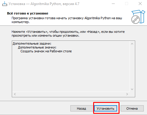 - после завершения установки добавить в исключения антивируса папку C:\Users\пользователь\AppData\Local\Programs\Algoritmika